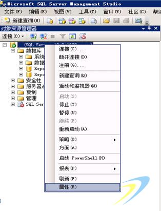 (1)打開數(shù)據(jù)庫(kù),用本地帳戶登錄,右擊第一個(gè)選項(xiàng),選擇屬性:
